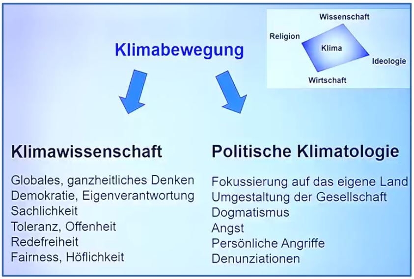 Sinngemäße Wiedergabe: In der politischen Klimatologie existiert eine Fokussierung nur auf das eigene Land. Man will nur das eigene Land mit dem Klima beglücken. Aber da geht’s eigentlich um etwas anderes, nämlich um den Umbau der Gesellschaft. Das ist eben Politik. Da werden also Gesetze erlassen im Sinne der Umgestaltung der Gesellschaft, fast wie bei Befehl und Gehorsam.